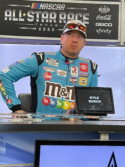 Kyle Busch discusses the NASCAR All-Star race to media members in a press conference Saturday afternoon at Texas Motor Speedway. Photo by Dawn Hall